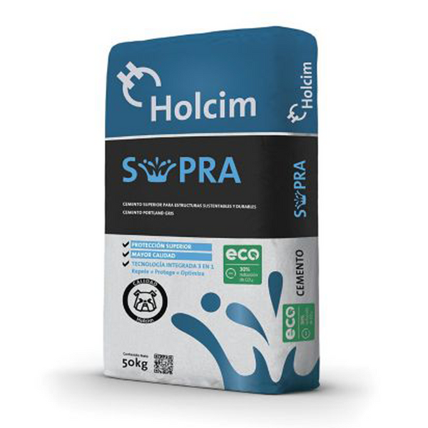 Holcim Supra es la nueva familia de productos desarrollados por Holcim México, que además de tener una tecnología inteligente 3 en 1 que, repele el agua, optimiza procesos productivos y protege las obras contra los efectos negativos de la humedad y de agentes ambientales, son cementos ECOamigbles que contribuyen a tener construcciones sustentables.
